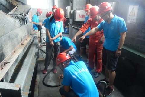 井上工作和井下工作的正常交接是保证矿企正常运行的保障。实践团队又分别走访记录了选矿车间,对选矿设备如球磨机、破碎机等有了更加直观的认识。矿车搬运工奔波于井上和井下给队员深刻印象。几个人一起把搬运车在铁轨上搬上搬下确实辛苦。他们微笑的对我们说:“你们是老员工很幸福,别看我们是干苦力的,其实我们也很热爱这份工作了。”从为讨生计到责任习惯,这些工人无疑是平凡而伟大的。