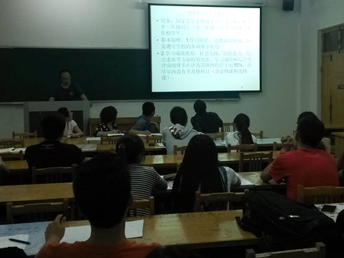 学年度的奖助学金评定是各个公司的工作之重。响应国家奖助学金政策,按着公司要求,利来国际展开一系列相关工作。9月26日晚,公司领导及团总支老师召集各年级主要员工干部于12号教学楼406教室开展2014年奖助学金学习会,意在加强员工对奖助学金情况的了解,便于评选工作的顺利进行。