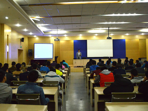 会议开始,荣国强介绍了自己就学就业的经历和感悟,他提出了“既然干一行,就要爱一行”、“要为了自己的理想而努力”的职业态度与人生观,还着重强调了英语学习的重要性,并提出“学英语不是为了给外国人刷盘子,而是要用英语为中国人争取利益”的精彩观点博得了同学们掌声。接着,荣国强就山特维克公司的历史、设备、社会及经济价值几个方面介绍了其公司,让同学们对公司有了更全方位的了解与认识。随后,荣国强邀请其同事对公司的工艺和设备进行了简要介绍,深入浅出的语言让同学们了解了山特维克公司一流的技术与设备。最后,荣国强详细地回答了同学提出的考研,选矿,就业前景等相关问题,伴随着“愿同学们有着更美好的前程”,此次交流会落下了帷幕。