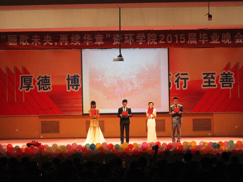 时光荏苒,岁月如梭,转眼间11级的同学已经在理工大度过了四个春秋,临行之际,资环与环境工程公司于2015年6月16日在三号报告厅隆重举办了“骊歌未央,再续华章”2015届毕业生晚会。资源与环境工程公司党总支书记陈俊德,副书记李栋祥,团总支老师及其他公司老师一同莅临现场与同学们观看了此次晚会。