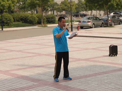 仪式开始,团总支老师王寿朋宣布“利来国际2015年暑期社会实践启动仪式”正式开始,接着由团委书记张程宣读11支重点团队名单,他说,公司共有1个校级精品团队、10个校级重点团队,83个普通团队,共436名同学均参与到2015年暑期社会实践中来,其中涉猎到教育关爱、传统文化、美丽中国、时政宣讲、创新创业等多个方向。随后由校团委书记赵明、资源与环境工程公司党总支副书记李栋祥,团总支书记张程、团总支副书记张倩为各团队进行授旗。员工代表曹阳发言,他说“我们将会在社会实践过程中反思总结提升、在艰苦环境中磨练意志,在不断地实践中增长技能,尽己所能为社会贡献一份力量。”