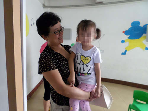 刚到百灵儿童康复中心,小朋友见到团队的到来一如既往地兴奋,直喊“哥哥”“姐姐”,朱阿丽和刘芹的加入瞬间壮大团队力量。老师们在康复师丁莉莉的带领下,依次参观了耳障治疗室、智障教学室、媒体教学室和综合理疗室。据丁莉莉介绍,耳障儿童需配带助听器,一年花费约20万,公司及政府会为负担不起费用的家庭免单;在见到多动症儿童时,孩子显得异常兴奋,和朱阿丽、刘芹拥抱,叫“阿姨”“妈妈”,不仅老师就连在旁边跟随的队友怜悯之情油然而生。最后参观的是理疗室,当时队友已在协助康复师照看孩子做理疗,朱阿丽、刘芹一边耐心听老师讲解,一边和孩子互动,一幕幕的场景让人感触颇深。