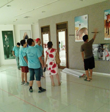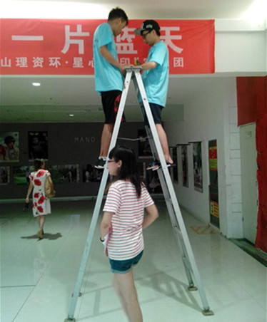 清晨,星心相印实践团冒着雨滴早早地来到爱心义卖的会场,因为场地是临时借的商场的闲置地,所以一切整理活动都需要我们自己动手准备。为规划场地,摆放各个特殊教育公司的手工艺品,团队小伙伴特意买的红色条绳来划分场地,几个人一起合作,工作细致,态度认真,体现出他们对此次活动的重视和对孩子们的关爱。为了让场地美观可以吸引更多的人,团队成员向商场的工作人员借来扶梯,即使有的伙伴恐高不敢上去。可当他们想到,是为了那群来自星星的孩子的时候,什么畏惧感都烟消云散,奋勇攀登,勇往直前。有在扶梯上往楼顶上贴装饰品的,有在下面帮忙扶着的,因为天公不作美,所以在室内比较闷热,但团队成员依然为此开心。时间慢慢地在雨滴中流走,会场布置的任务也逐渐接近尾声,忙碌一天的人是时候该休息了。