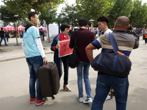 9月12号,新生报到当天,早上6点半公司员工会相关人员便开始布置迎新场地,分工明确,整齐划一。有举着公司展牌到新生下车处迎接的,有