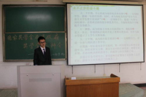 最后,党总支副书记做会议总结,他希望同学们能以这些优秀的同学为榜样,用心做事,用心思考,让自己的大学更加精彩。