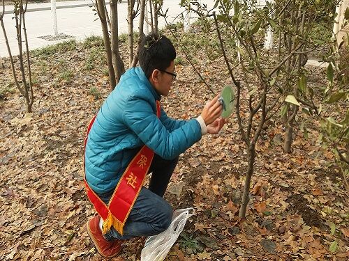 天气再冷,也挡不住洁宇环保社会员们走出宿舍认识校园里树木的热情。在这次会员活动中,会员共分为两队,分别到鸿远楼后的连心湖与博大花园进行活动。在活动中,会员们认真阅读树木上的标志牌,有些会员还时不时拿出手机扫描一下标志牌上的二维码,以便更多的了解这种树木。什么紫薇花,西府海棠,白皮松,玉兰等树木,相信在这次活动之后,都会被会员们永远铭记。在阅读完标志牌上的内容之后,会员们拿着洗的干干净净的抹布,仔细的把标志牌擦拭干净。