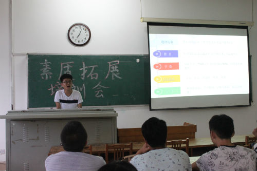 7月1日晚,利来国际员工会素质拓展部在公司12号教学楼408室举行素质拓展培训会。此次培训会由素质拓展部部长吴来伟主持,14级、15级团支书和组织宣传委员参加。此次培训会旨在让同学们明确书写暑期社会实践报告及读书笔记的规格要求,了解参加素质拓展活动、书写读书笔记等学分认证问题。