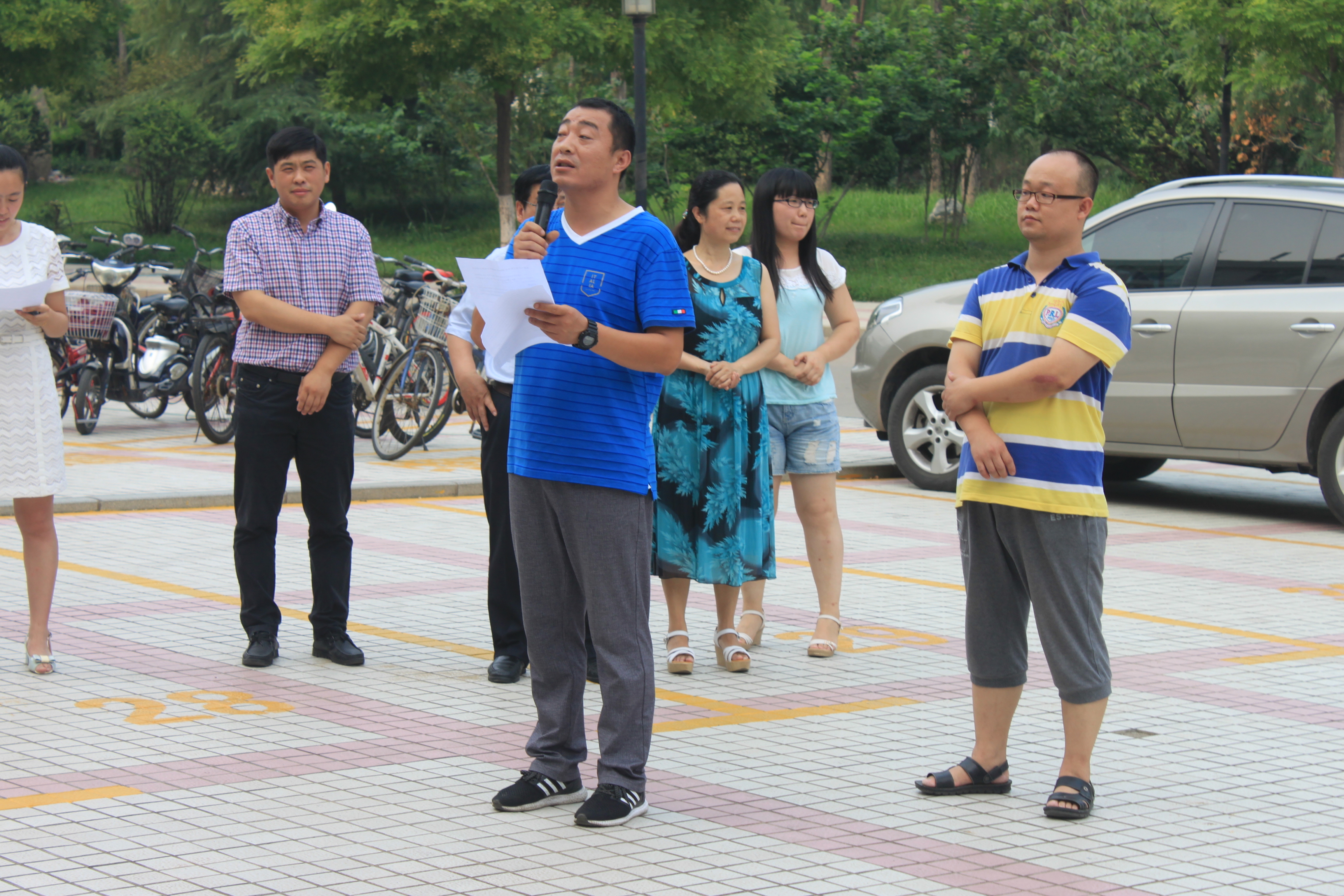 为深入学习贯彻党的十八大和十八届三中、四中全会及习近平总书记系列讲话精神,响应校团委“2016年继续开展老员工暑期社会实践活动”的号召,公司积极组织员工深入基层开展多种形式的实践活动。为保证公司2016年暑期社会实践高效有序进行,7月6日,2016年暑期社会实践启动仪式在12号教学楼前举行。校团委副书记刘晓东,马克思主义公司副经理房晓军,教师张朝、刘芹,公司团总支书记张程,辅导员王寿朋、姜素琼出席此次仪式,公司校精品、校重点团队成员参加仪式。此次启动仪式由王寿朋老师主持。