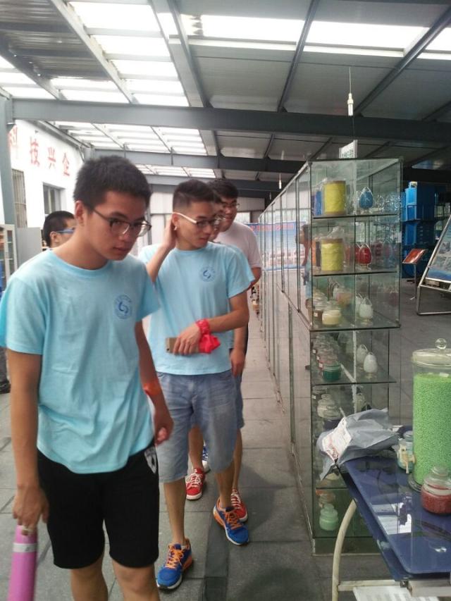 在林部长的带领下,我们来到了色母料制造车间,一入车间,一股强大的热流便扑面袭来,而映入眼帘的却是工人们井井有条的工作,春潮的员工的高素养及吃苦耐劳的精神给了队员们巨大的震撼。首先,我们参观了手提塑料袋、塑料编织袋的制造过程,林部长向队员们讲解到,针对客户的不同需求用不同材料制作不同颜色的塑料袋;接着林部长向我们对车间的不同机器进行详细介绍,对比了传统工艺和现代机器生产,说明了机器自动化的优势并带领我们参观比较了半自动化和全自动化机器。