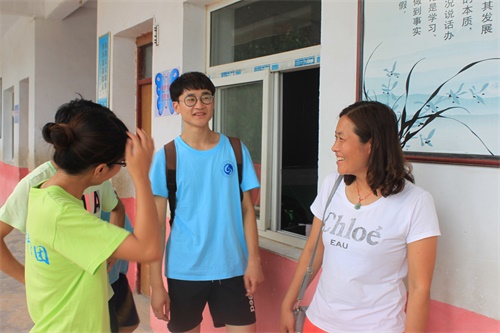 兰考县孟寨乡曹庄小学董事长王翠花来憨寺小学进行指导。她简单介绍了当地的风土人情,视察了队员们的教学环境,并对队员们的到来表示感谢。