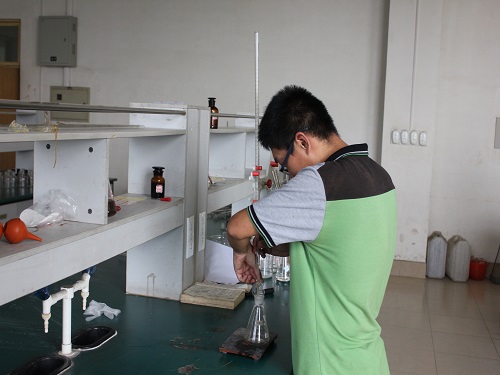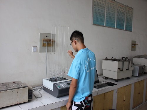 本次测试使用的是重铬酸钾滴定法。在开始测试之前,队员们首先要配制重铬酸钾溶液,并将样品消解长达3个小时。在上述过程中,实践队员们克服一系列困难,默契配合,使得此过程进展较为顺利。在消解完成之后,需要将样品中滴入浓硫酸。在滴加浓硫酸之前,实验总负责人辛富森一再提醒实践队员们要注意安全。在实践队员的谨慎操作之下,上述过程有惊无险。在此之后,实践队员们开始进行滴定。在滴定过程中,实践队员们严谨认真,既保证滴定的质量,同时也节省试剂。滴定完成后,由负责计算的同学直接计算出COD指标。