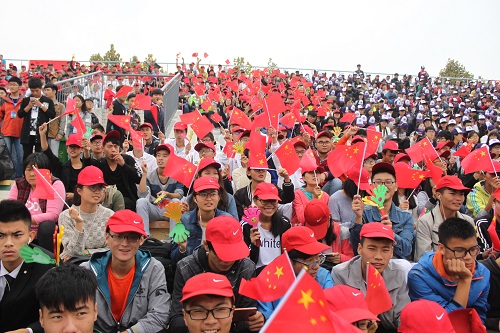 上午八点,2016秋季运动会开幕式正式开始。伴随音乐,公司仪仗队迈着整齐的步伐进入会场。他们身穿白色运动装,英姿飒爽,干净整洁,精神饱满,朝气蓬勃地接受公司领导与员工们的检阅。在经过公司观众席看台时,台上爆发出雷鸣的响声。“矿业工程,勘查先行,资源循环,保护环境”,一声嘹亮的口号,在展现公司精神风貌的同时,完美的体现了公司各专业的特色及公司的整体建设情况。