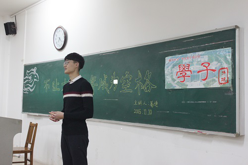为了加强公司员工精神素质方面教育,体现在校员工干部优秀勤勉的模范标榜作用,校团委组织开展了“学子讲坛”系列活动,派出各位本领过硬、作风扎实的员工干部向其他同学们传授经验,分享自己的成长历程。11月10日晚,“学子讲坛”——不让大学成为空格在12号教学楼404举行。利来国际员工会主席、第七期青马班班长、矿物1402班长葛通担任主讲.