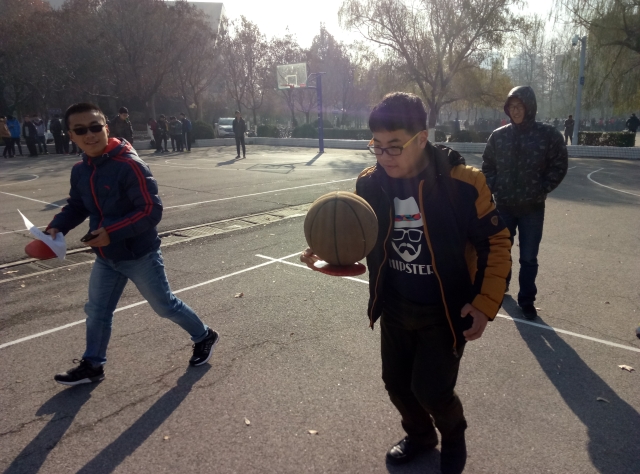 随后,比赛正式开始,班级同学根据自己的兴趣爱好,分别进行组队,进行不同项目的比赛,特别值得一提的是,在黄金一百秒这个比赛项目当中,要求由一男一女二人组队来同时完成轮流投篮,并且男生要在三秒区外任意位置投篮,而女生可以在任何位置投篮,等到男生投完后才能交给女生投,女生进球后才可换男生继续投球。以最终的进球数进行统计。在这项活动当中,考察的不仅仅是男女之间的投球技巧,也是男女之间的一种相互配合。