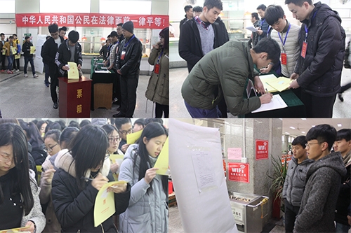 陈书记介绍了大会工作人员情况。根据选民登记情况,第十选区利来国际投票站选民共计1394名,经选民推选,李栋祥同志担任总监票人,黄汝高、于文刚同志担任监票人,张倩、姜素琼、苗涛同志担任计票人。监票票人员检查票箱,计票人员开封检查选票后,选举投票正式开始。