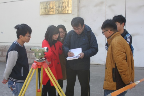 活动伊始,16级的同学们按照之前的分组有秩序的领取了实践活动需要用的仪器,在指导教师刘晓对此次实践活动进行简单介绍后,各小组开始了紧张有序的测量。15级的同学在刘晓的带领下,运用已经学过的知识,对16级的同学们进行简单的指导。活动过程中,刘晓亲自对同学们进行指导,为同学们演示三脚架及水准仪的使用。对于各组记录的数据,她仔细查看并指出错误的地方。15级的同学们面对学弟学妹们的问题,也是热情回答,手把手的教他们如何调平水准仪及如何准确读数等。此次活动共两个小时,在这短短的两个小时中,大部分的同学完成了此次活动,并已处理好数据。此次活动时间虽短,但同学们态度认真,积极投入。