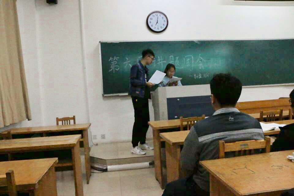 为了提升班级的学习氛围,增进同学们之间的感情,4月9号晚,勘查1601班在12号教学楼406教室举行了第六周讲题周会。此次讲题周会由班长陈龙和学习委员谷玉担任主讲,全班同学参加了活动。