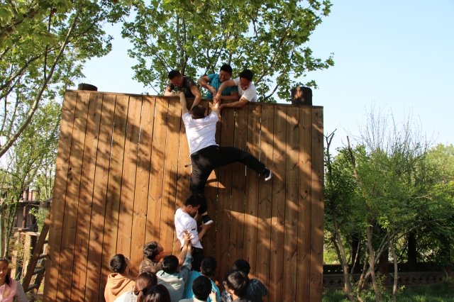 参加活动的人员被分为两组,拓展内容分徒手攀岩和系列高空项目。徒手攀岩让大家体验了什么是坚持和再坚持。系列高空项目中,“独木桥”让大家体验了勇敢一点,走过去就是一片天的豁然。“一线生机”,让成员体会了战胜自己你就是赢家的畅意。和搭档共同合作才能完成“生死相依”活动,让笃实的信任和温暖的感激在成员心中绽放。”毕业墙”项目的完成让大家充分的体会了团队的力量,同时,也重新思考在团队中自身的定位问题。