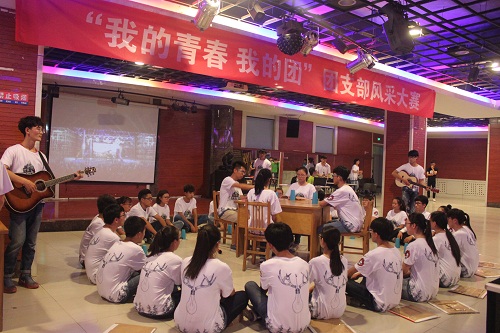 此次比赛分团支部基本面貌展示、团支部特色展示及团支部风采展示三个环节。比赛伊始,参赛班级来到指定位置排队等候,依次进入赛场,之后,各参赛队伍依次上台进行表演,首先是团支部基本资料展示,各团支部以视频和ppt的形式来展示团支部风采,由班级发言人对班级的具体情况进行介绍,紧接着是各团支部的才艺展示,各种各样的表演在舞台上绽放:精彩的荧光舞引爆了全场,整齐划一的杯子舞迎来了阵阵掌声,诙谐有趣的群口相声把比赛推向高潮。
