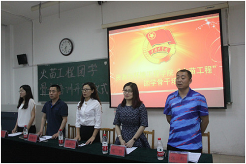 仪式开始,全体人员起立共唱共青团团歌,紧接着,由张倩具体讲解此次团学骨干培训的目的及意义,并宣读参加培训的人员以及分组名单,她表示,希望通过本次团学骨干培训,提高公司员工干部的思想政治素质,帮助其找准工作定位,拓展工作领域,探索工作方式,开创工作新局面。随后,苗涛向大家介绍培训的课程安排以及考核和学员管理方法,希望同学们能够严守纪律,认真学习。随后,学员代表刘晴发言,她代表全体团学骨干向给予这次培训机会的领导、老师们表示衷心的感谢,同时表明作为学员要端正态度,珍惜此次培训机会,明确自己的职责,做好模范带头作用。