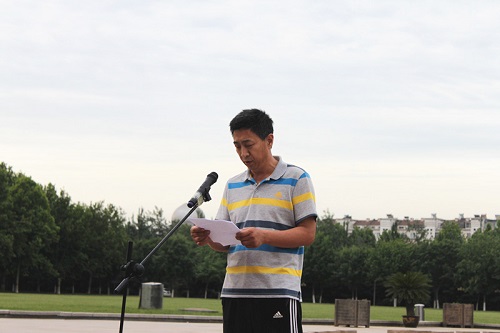 迎着初升的朝阳,升旗仪式正式开始。英姿飒爽的国旗班护旗队迈着整齐的步伐,缓缓护送五星红旗入场。嘹亮的国歌回响在耳旁,五星红旗冉冉升起,全体师生对国旗行注目礼。之后,员工代表葛文成进行国旗下演讲。他号召同学们紧跟社会正能量,树立社会主义核心价值观,努力做到“勤学,修得,明辨,笃行”,学会自我管理,培养良好习惯,力求全面发展,用自己的双手实现青春的理想和民族的梦想。