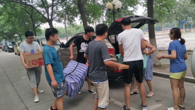 自去年“爱心公益”车队之后,又一次由21位公司领导、老师们自发组成的“爱心司机”车队,从6月24日上午八点开始,有序地集结在20号楼公寓附近的服务站,在毕业生离校之际,公司领导老师们与毕业生亲切交谈,衷心祝愿,深情话别。在此过程中,各位领导老师不辞辛苦,分工明确,密切配合,及时地把离校毕业们送往各个车站。与此同时,在16号公寓楼前的“送学长学姐”服务站上,工作人员有序分组,轮流为送学长学姐送服务,所有工作人员皆以饱满的热情投入到服务工作中,给大四的学长学姐们留下了深刻的记忆。在此次服务中,工作人员不惧酷暑、不怕吃苦,在公寓内、外不停忙碌,帮助毕业生们收拾物品、搬运行李,给他们送去温暖,为他们的大学添上最后一笔色彩。