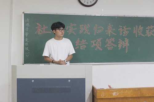 活动开始,由主持人介绍此次答辩比赛的规则,接着,各实践团队依次展示实践的成果,同时与大家一同分享自己的收获与感受:绿色依米花社会实践团追寻民族传统文化,以座谈会的形式了解精准扶贫实施状况,重新认识了社会实践的意义;绿色创想实践团以问卷调查、座谈会等形式探索垃圾分类处理现状;工业的脊梁社会实践团奔赴矿山研究矿山建设的绿色标准;海绵淄博实践团结合当下热点海绵城市问题对孝妇河水质进行调查;心系双堠,扶贫逐梦社会实践团则延续“三下乡”活动,进一步亲身实践,此外,Ken梦暑期社会实践团、星星的使者社会实践团、风行百象社会实践团、绿色bus社会实践团、嘿,烧饼社会实践团以及墨莲烛光社会实践团也分别展示了自己实践活动的创新点和最终成果,赢得了同学们的阵阵掌声。
