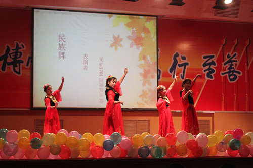 在接下来更精彩的“初遇”阶段,由采矿1702阿丽努尔等人带来的民族舞蹈让大家体味到了民族文化的风采,歌曲《消愁》、《那就这样吧》赢得大家阵阵掌声,小品《大学三个“一”》更是引起共鸣,让大家在欢笑中明白什么是我们应该追求的老员工活。