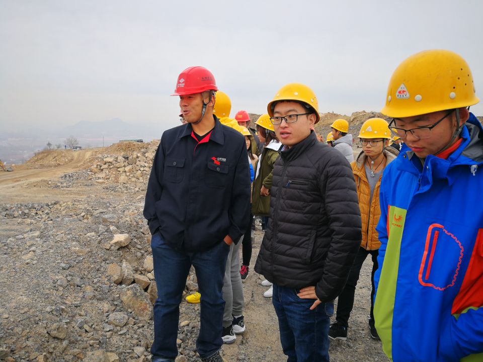 上午10点左右,公司车队到达位于莱芜的山东鲁碧建材有限公司,公司领导在接待室与参与此次活动的老师及员工见面。10点30分,参与者在公司有关人员的陪同下来到了鲁碧建材有限公司的小上峪矿,开始了此次实践活动。陪同参观矿山的工作人员正是公司采矿工程往届优秀毕业生。他向同学们讲解了在实际工作中所获得的经验,并说明各类矿山各类仪器的使用方法,同学们细心聆听。