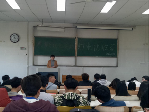 活动伊始,贾靖洋对此次寒假社会实践的完成情况进行了简单的总结,接着刘鸿飞、刘金辉等代表针对自己的实践及收获与大家进行了分享,他们展示了自己的寒假社会实践活动,讲述了自己在社会实践中的经历以及自身的感受。