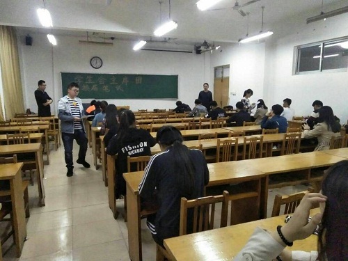 考试开始,赵鹏强调考试纪律问题,考生有秩序入座,并上交与考试无关的物品。此次笔试本着公平、公正、公开的原则,笔试内容突出考察考生对“一心双环”(确立以共青团员为团学组织的核心和枢纽、实现员工会和员工社团两个圆换分层紧密围绕)团学组织建设机制的理解与认识,侧重了解考生对员工会未来的规划以及建设意见等。