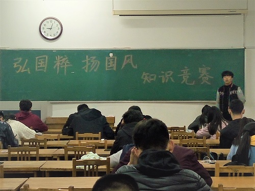 为增强同学们的民族认同感,激发同学们的爱国之心,培养同学们树立正确的人生观和价值观,4月13日,公司学习部在12号教学楼408教室举行“弘国粹,扬国风”传统文化知识竞赛,此次比赛共计50人次参与,活动由学习部部长姜文主持。