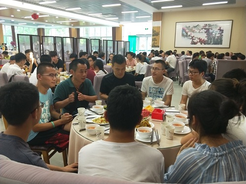 伴随着一首《怀念青春》,14级毕业生一起开始包饺子,各位老师同学就坐后,老师与同学们就公司建设、自身发展等方面开展了一次座谈会,会上,14级毕业生依次对自己大学四年的个人发展进行总结,同时表明了以后的发展方向及目标。各位老师们也列举出优秀毕业生的在校事迹,对他们在理论学习及自身发展过程中所表现出来的优秀品质给予高度赞赏。随后,陈俊德祝贺14级毕业生收获各方面佳绩,他表示,毕业后要更好的适应社会,就要继续以认真扎实的态度继续学习,并希望同学们能够珍惜师生、同学间的友谊,时常交流,在工作学习上有更辉煌的成绩。最后他满怀深情地说,无论同学们将来得意,还是失意,无论飞得多高,走得多远,大家永远是资环的一员!