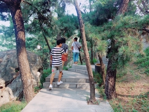 上午七点,实践团队员集合完毕后,一同乘车前往蒙阴县孟良崮遗址,一路上成员们内心都很忐忑,既充满了对英雄的敬畏,也充满了对革命烈士的缅怀。经过一个小时的车程,我们来到孟良崮山脚下。我们便沿着山路一路参观,沿途看到野战军的战士雕塑,有的在埋伏,有的在射击,有的在扔手榴弹;看到战地指挥所等等。爬山过程中我们气喘吁吁、大汗淋漓,深刻的体会到当时华东野战军围歼国民党军沿途翻山越岭、围追堵截的艰辛,体会到当时在敌军的枪林弹雨下我军的艰险困苦。短短一上午的时间,我们登上山顶,瞻仰英雄纪念碑,挥舞着五星红旗,那一刻,我们深刻的体会到胜利的来之不易与艰辛艰苦。
