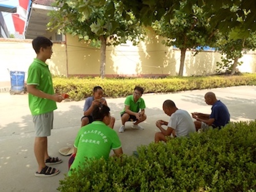 8月13日,“心系双堠,扶贫逐梦”实践团走进沂南县双堠镇敬老院慰问老人,并帮助他们做一些力所能及的事。