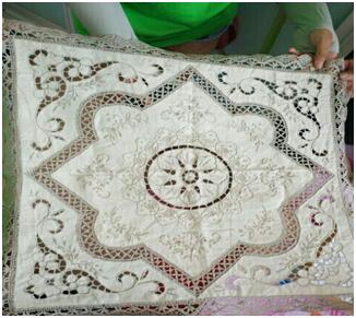 王家卿老人是非物质文化遗产传承人,曾在全县工艺品生产技术表演中荣获棒槌花边第一名,优秀作品也被收入烟台市牟平区文化馆
