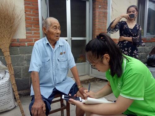 7月25日,“红色七月”实践团开展探访革命老兵活动。经过一个多小时的车程,团队成员于上午九点到达行村镇西小滩村。在村民的带领下,实践团来到了革命老兵孙纯秀的家中。