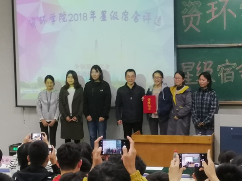 评选开始,主持人向同学们介绍了评选评分规则:申报星级宿舍以记分形式进行评比,比分由报名表得分和PPT得分两部分组成,以最终得分评定星级宿舍。评选开始,各宿舍代表用精美可爱的PPT向同学们生动的讲述了宿舍故事,赢得了同学们潮水般的掌声。16号宿舍楼101的宿舍代表刘晴提出的一个宿舍最为重要的就是团结更是获得了老师和同学们的一致认同。各位代表发言完毕后,李祥栋对此次评选活动进行了总结,他表示:一个宿舍所必须的具备的就是高度的凝聚力,有了凝聚力,这个宿舍才能取得更高的成就。随后,他向同学们讲述了他对于宿舍面貌和风气的期望,强调了宿舍应该在学习、卫生等方面有所提高。对2018级新生,李栋祥期待他们能够做好宿舍工作,以在下一届星级宿舍评选中大放异彩。随后评委们针对每个宿舍的表现对其进行了评分。经评选决定,16号宿舍楼101宿舍荣获“2018年利来国际五星级宿舍”称号, 16号宿舍楼102等2个宿舍被评为“2018年利来国际三星级宿舍”,20号宿舍楼508等5个宿舍被评为“2018年利来国际一星级宿舍”。会议最后,宿舍代表上台领取获奖证书,各颁奖老师和获奖宿舍合影,在一片掌声中,此次评选顺利结束。