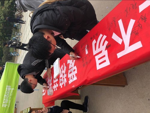 此次宣传活动前期准备中,洁宇环保社成员明确分工、人人都积极参与。提前与食堂工作人员取得了联系,争取到了在食堂门口悬挂宣传条幅的机会。在宣传过程中,工作人员早早将条幅、签字笔等活动所需工具放置到位,各成员积极配合,积极宣传,介绍粮食安全,并且倡议同学们拒绝舌尖上的浪费、践行光盘行动,并耐心解答同学们的问题。活动主要形式为,让前来就餐的同学们在“一米一粟当思来之不易,爱粮节粮须知人人有责”条幅上签字。与此同时,在食堂内部播放有关于光盘行动的视频,让同学们在就餐时就可以意识到节约粮食的重要性。通过对食堂工作人员的采访我们了解到,如今同学们对食物的浪费情况较之前有很大改善,但仍存在许多问题。本次活动旨在增强同学们节约粮食的意识养成良好的就餐习惯,坚持践行“光盘行动”。