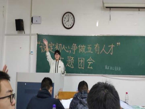 此次活动共分为三个部分,包括“主题团会”、“集体宣誓”和“互动娱乐”。首先刘鑫雨主持主题团会,引领同学们回忆并深刻理解五有人才的内在含义,并用吕传毅书记的生平经历来激励大家严格要求自己,以谦逊严谨的态度越过人生的一道道障碍,朝着自己设定的方向努力奋斗。在开展主题团会的过程中,同学们各抒己见,踊跃发言。