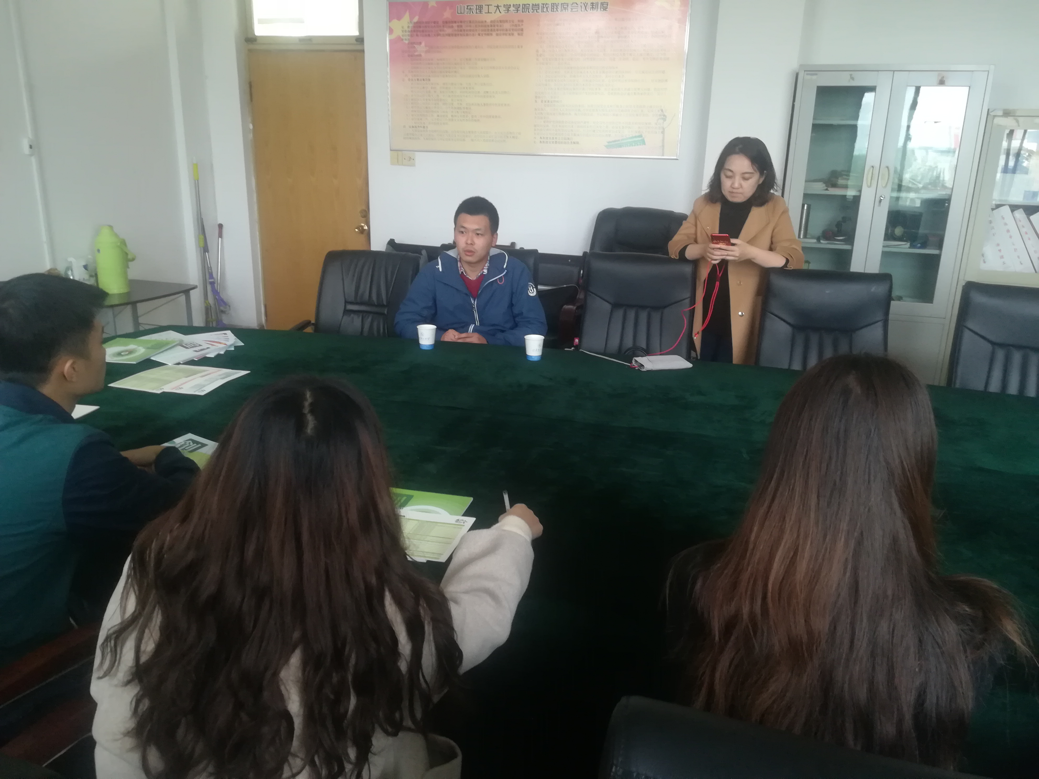 10月25日下午两点,北京天地人环保科技有限公司在12号教学楼446会议室召开招聘会,主持会议的是北京天地人环保科技有限公司安经理,参加会议的有韩经理及环境工程专业的五位同学。