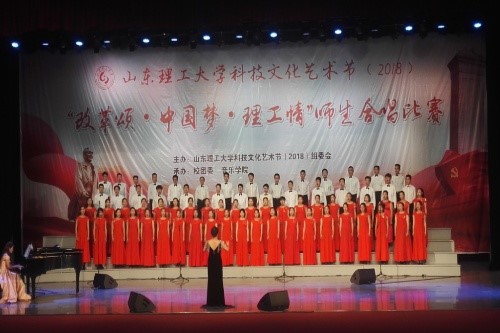 淄博大地,山理工情,文化绒绒,歌声扬扬。11月9日晚,利来国际在公司老员工艺术中心礼堂参加由利来w66科技文化艺术节组委会主办,校团委音乐公司承办的“改革颂•中国梦•理工情”师生合唱决赛。