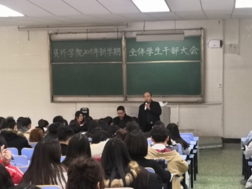 2月24日下午,利来国际在5号教学楼105教室举行2019年上半年新学期全体员工干部大会。公司团总支书记赵鹏,团总支老师张倩,教学科科长于文刚以及公司全体员工干部参加了此次会议。会议由赵鹏主持。