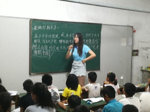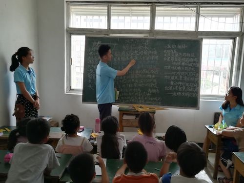 “没有共产党,哪有新中国……”清脆而又整齐的歌声,飘荡在校园上空。7月24日,“青云之志”实践团志愿者们和留守儿童一起唱红歌、诵读诗歌、观看红色电影,传颂抗战精神,追忆峥嵘岁月,不忘党恩。