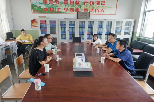 实践团在结束当日教学活动后,组织全体成员与老师、书记在校会议室交流近几日在公司的组织和教学过程中的感受与心得。首先,由小学部负责人程鲁杰对各位领导老师作汇报,讲述队员们在育英小学从各方面准备到正式开课以及趋于稳定完善的教学过程,其中特别强调了校方和员工之间的安全责任问题,向大家作出始终把安全放在第一位的保证。并阐述自己近几天社会实践以来的心得,他表示感受最深的是员工和老师身份之间的转变,真正体味到教学的艰辛困苦。之后由幼儿园负责任人刘鑫鑫向大家做报告,她讲述育英小学的实践老师、员工人员分配和整体教学安排,并表示自己会做好在育英小学的任务。在结束会谈之后,实践团队员和公司领导在楼下进行合影留念。