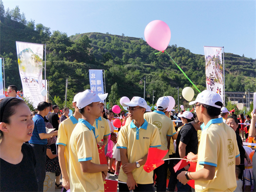 7月21日中华人民共和国第二届青年运动会山西燃气杯火炬传递在吕梁市方山站北武当山下举行开幕式,县团委书记薛燕邀请实践团队员们方去做志愿服务活动。