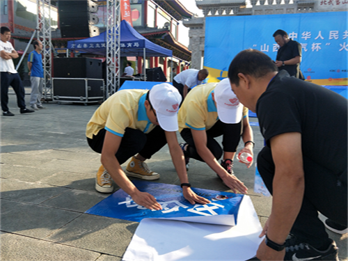 首先大巴车在凌晨四点半到达树林则村,依次经过陈家湾村,红崖湾村,最后到达育英小学。志愿者们在育英小学整顿,分发给每个人一件衣服,一个帽子,一瓶水和一份早餐,最后六点半到达北武当山下,工作人员去主席台领取任务,实践团被分成两组,育英小学组、油坊沟组、红崖湾组和徐瑞二十个人在一组,张帅带队听文化局指挥;树林则组、陈家湾组、麻裕村组、磨地湾组以及高宁澳十六人在二组,吴德宝带队听体育局指挥。领取的工作任务包括举国旗,贴地标,分发气球,拉横幅等工作。八点半开幕式正式开始,经过一系列的表演后,县政府副县长王颢点燃火炬,交由第一位火炬手进行传递,同时气球全部放飞升空,志愿者此次的任务就到此结束了。