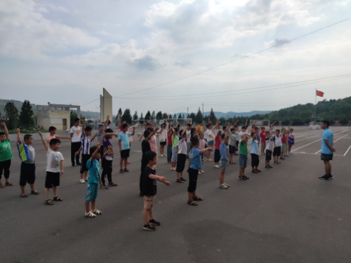上午8点,同学们准时坐在教室里。教学课程按计划有序进行。队员们结合山西省离石区教育局的教育方针开展传统文化教学展开创新教学,初中班同学在韩赛航的引领下学习《虞美人》,其他队员引导已经上初中的同学和即将进入初中的同学预习和复习各类基础科目。小学班的同学先是进行课后作业辅导,解决自己的作业问题。此后是张丹负责的小学部分的语文课,内容是学习成语和背诵古诗,成语教学的目是让孩子们学习一些生活中常见的成语并且了解它们的含义和用法。第二节课是孩子们期待已久的体育课,王朝伟担任授课老师,他带领同学们进行课前热身运动,包括扩胸运动,伸展运动和振臂运动。同学们配合队员指挥,认真完成队员指导的动作。
