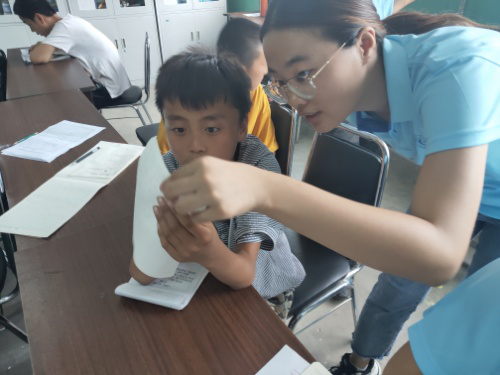 经过四天的支教,实践团的队员们教授孩子们知识的能力有了明显提升,队员孩子们相处融洽,并且有些孩子把自己画的画送给老师。队员为孩子们耐心辅导作业,解疑答惑。