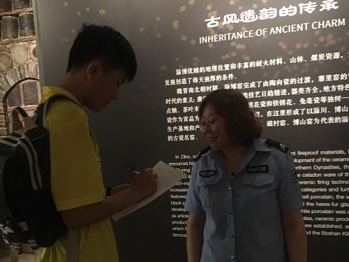 7月18日上午,乐淘陶实践团走进淄博市张店区琉璃陶瓷馆,开展馆内访谈调研活动。进一步调查淄博陶瓷馆的员工和游客对淄博陶瓷文化的传承和发展状况的看法,以获得馆内人员对未来淄博陶瓷文化发展设想的第一手资料。